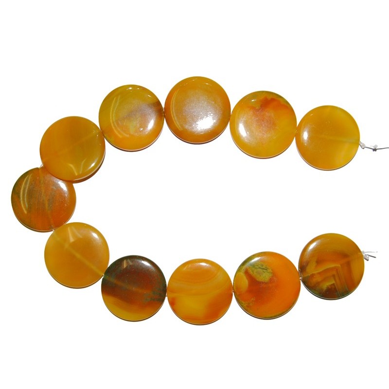 Tira de 40 cm con discos de Ágata Amarilla-Naranja. Cada uno de estos discos mide 25 mm.
