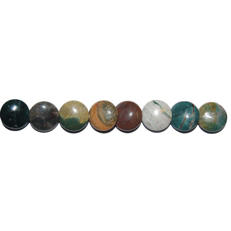 Tira de 40 cm que contiene unos 40 discos de ágata de la india de unos 10 mm de diámetro. La mejor calidad para nuestros clientes.