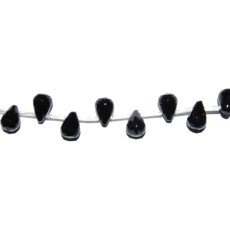 Ágata Negra en forma de lágrima facetada en nuestra tira de 40 cm. La medida de cada una estas lágrimas es de 6*10 mm.
