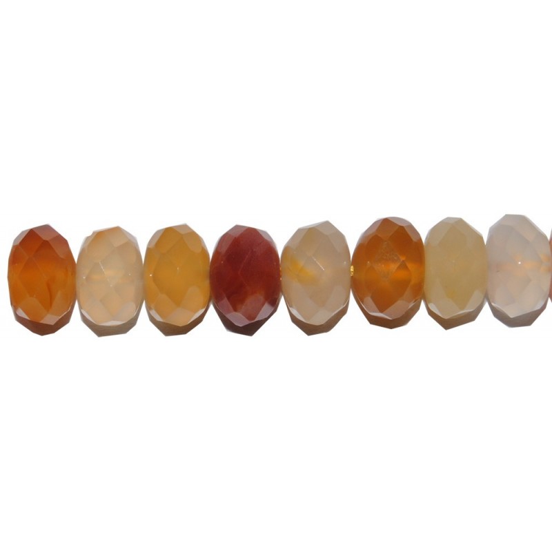 Rondeles de la piedra Cornalina perfectamente facetados en nuestra tira de 40 cm. Cada rondel mide 6*10 mm.