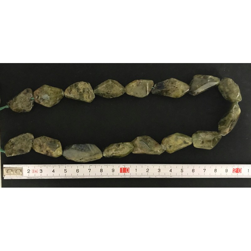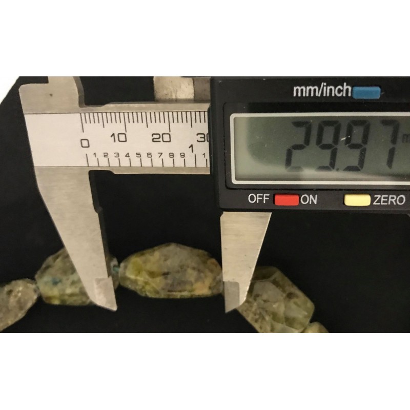 La medida de cada uno de estos nuggets de Granate Verde es de unos 30*15 mm aproximadamente.