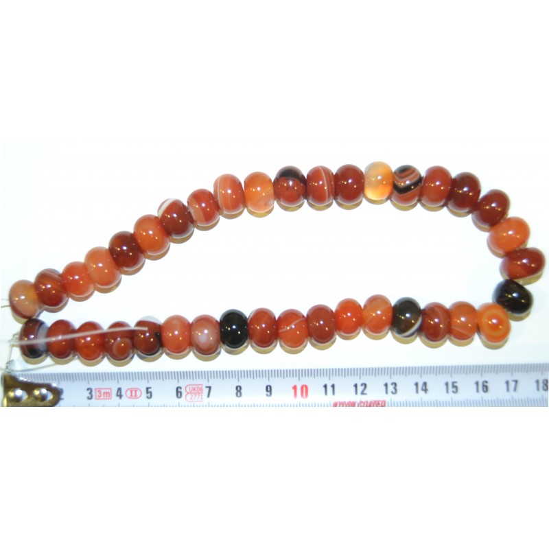 Piedra Semipreciosa en forma de rondel. La medida de cada unidad de este Ágata es de 14*10 mm.