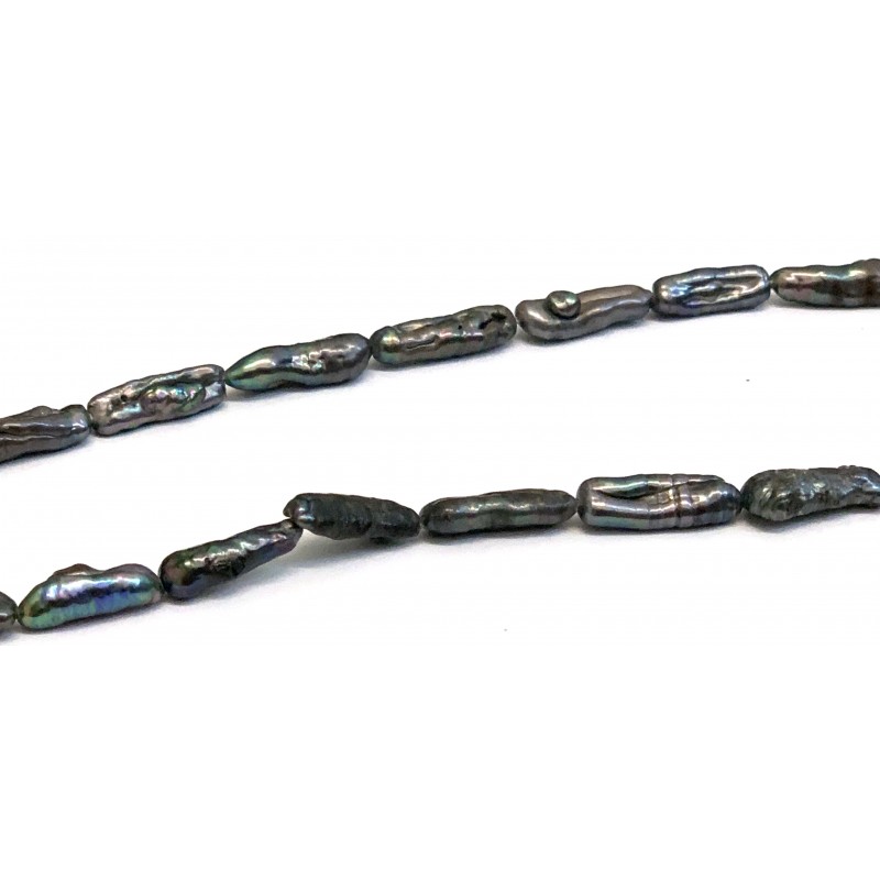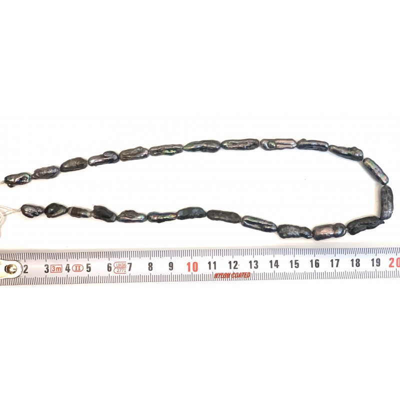 La medida de cada perla es de 6*18 mm aproximadamente.