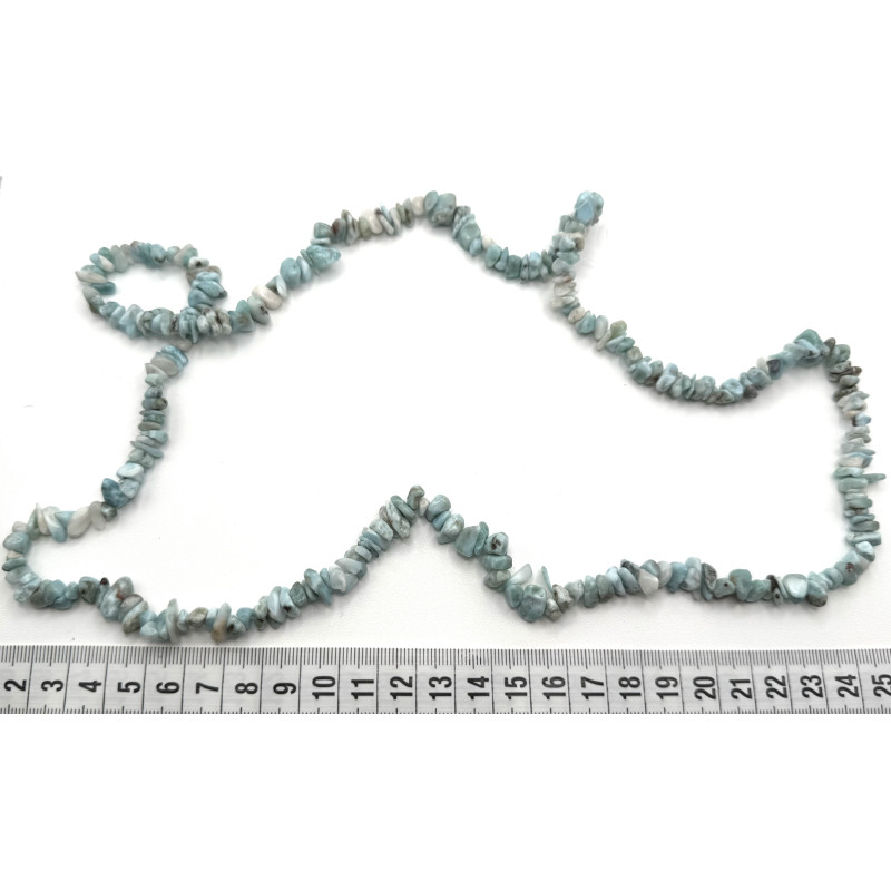 Larimar en forma de chip en una tira de 80 cm. Larimar completamente natural.
