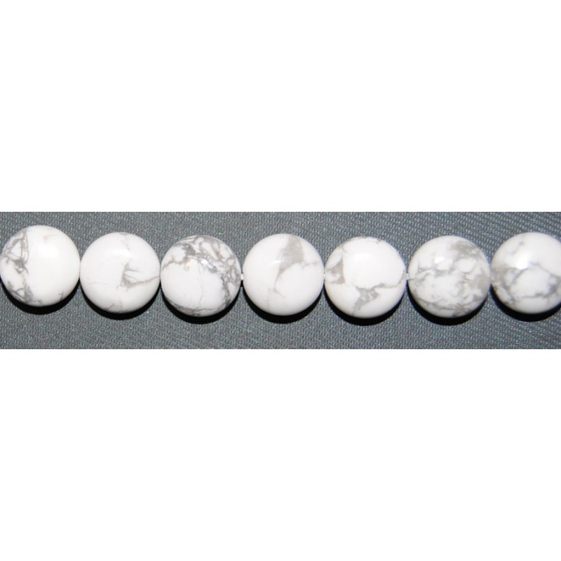 33 discos de la piedra Howlite en una tira de 40 cm. Cada uno de estos discos mide 12 mm de diámetro.