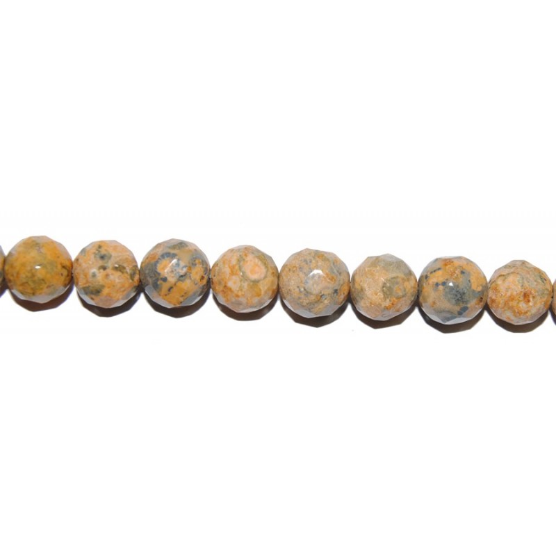 Tira de 40 cm con bolas perfectamente facetadas de Jaspe Madera. El diámetro de cada una de estas bolas facetadas es de 8 mm. El precio indicado es el de la tira completa.