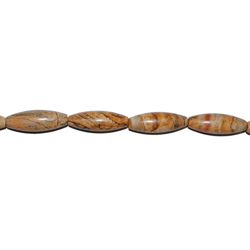 Tiras de 40 cm con Jaspe Madera en forma de oliva. Cada una de las olivas mide 13*40 mm. El precio indicado es el de toda la tira. Calidad al mejor precio.