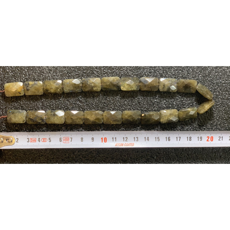 Rectángulos de Labradorita perfectamente facetados en esta tira de 40 cm. Cada rectángulo mide 13*18 mm. El precio marcado es el de toda la tira.