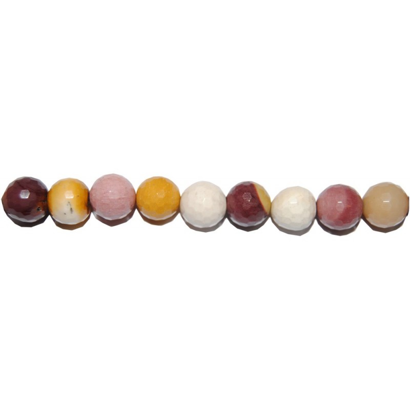 Bolas de Mokaita perfectamente facetadas en esta tira de 40 cm. El diámetro de cada bola facetada es de 8 mm. El precio indicado es el de la tira al completo.