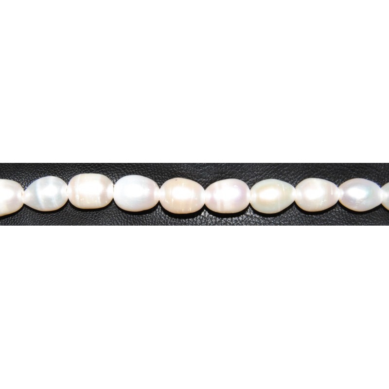 Perla cultivada en agua dulce de una gran calidad, con un orificio de 2 mm para poder pasar cuero.
